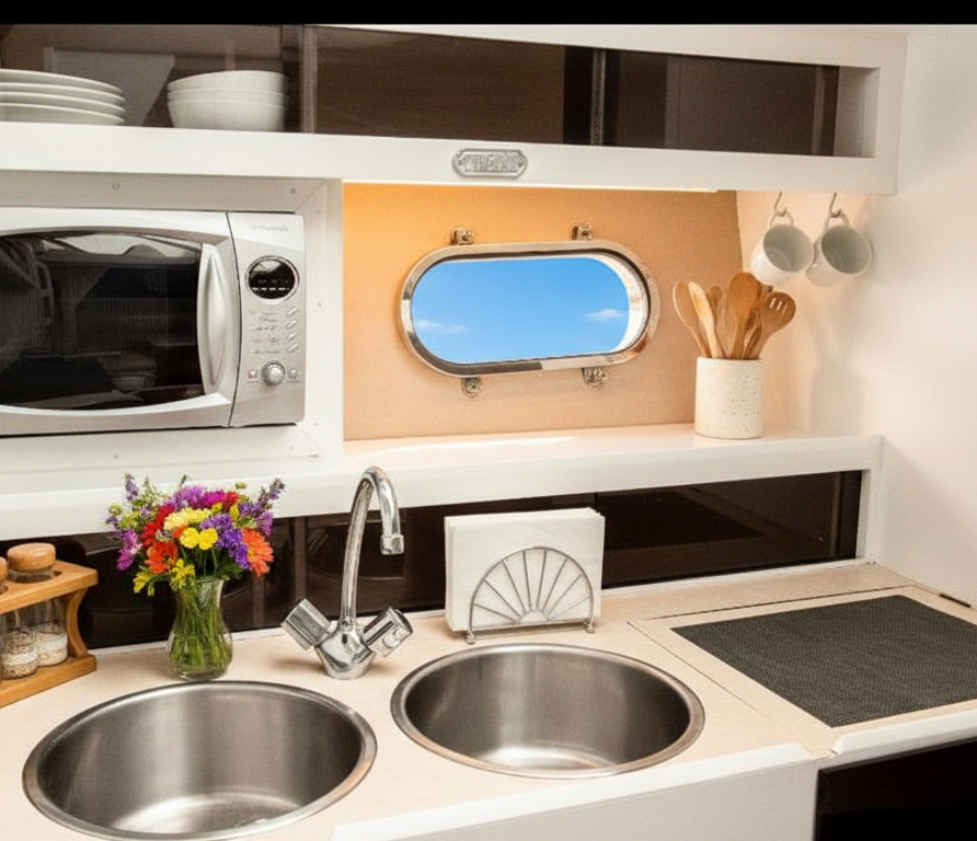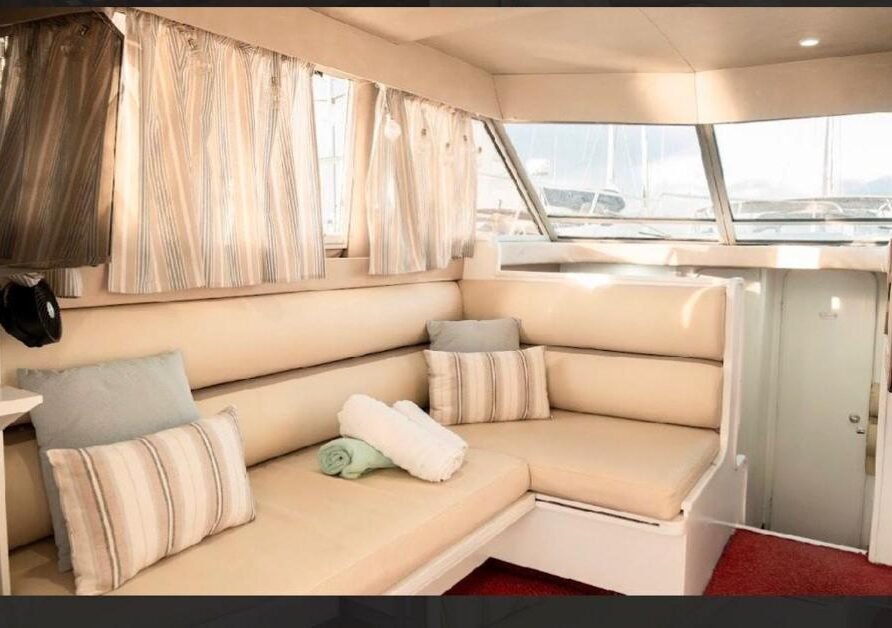 El interior de nuestro barco hotel ha sido diseñado para el descanso absoluto. Disfruta de un camarote principal con ropa de cama de alta calidad, detalles románticos y una iluminación cálida que invita al relax. El salón privado, equipado con mobiliario elegante y vistas panorámicas, es el lugar ideal para una cena íntima. Es mucho más que un alquiler de barco para dormir; es tu refugio privado en el Atlántico.